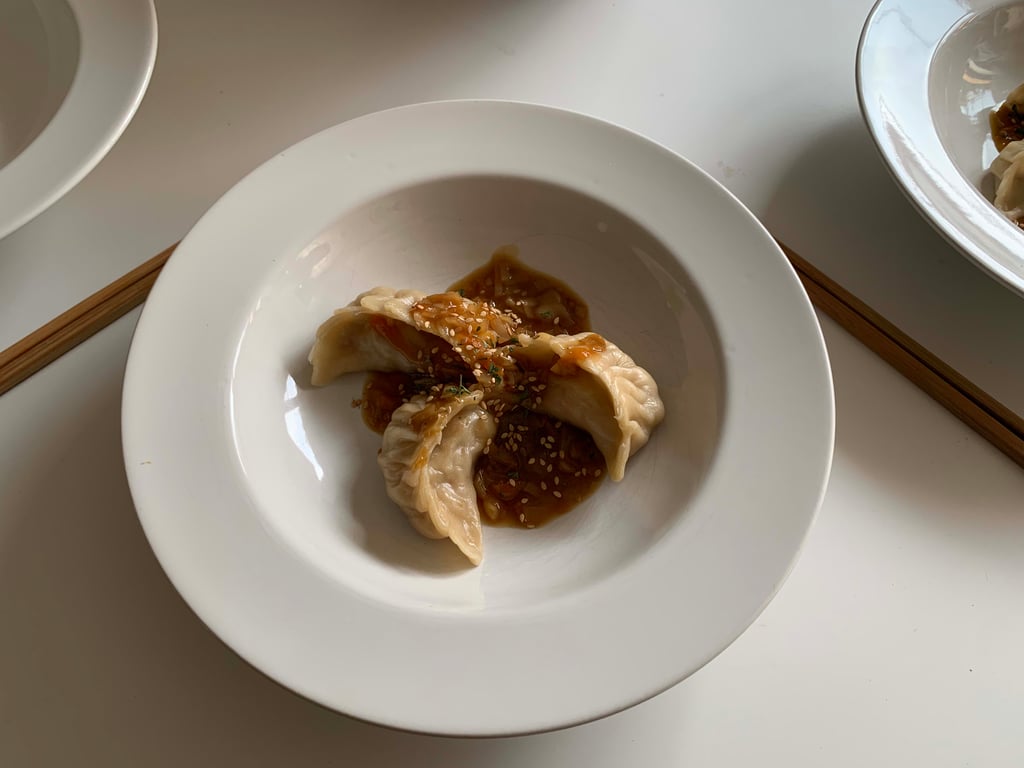 - Směs i omáčku máme hotovy, můžeme tedy začít s plněním taštiček.