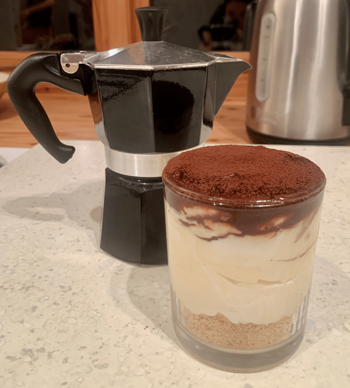 - Jestli jste se rozhodli obětovat a pečete korpus, během pečení už si rozjeďte pudink. Jestli ne, tak s ním začněte. Jakmile krém dokončíte, šoupněte ho do sklenice na drť ze sušenek, poprašte kakaem a schovejte do lednice.