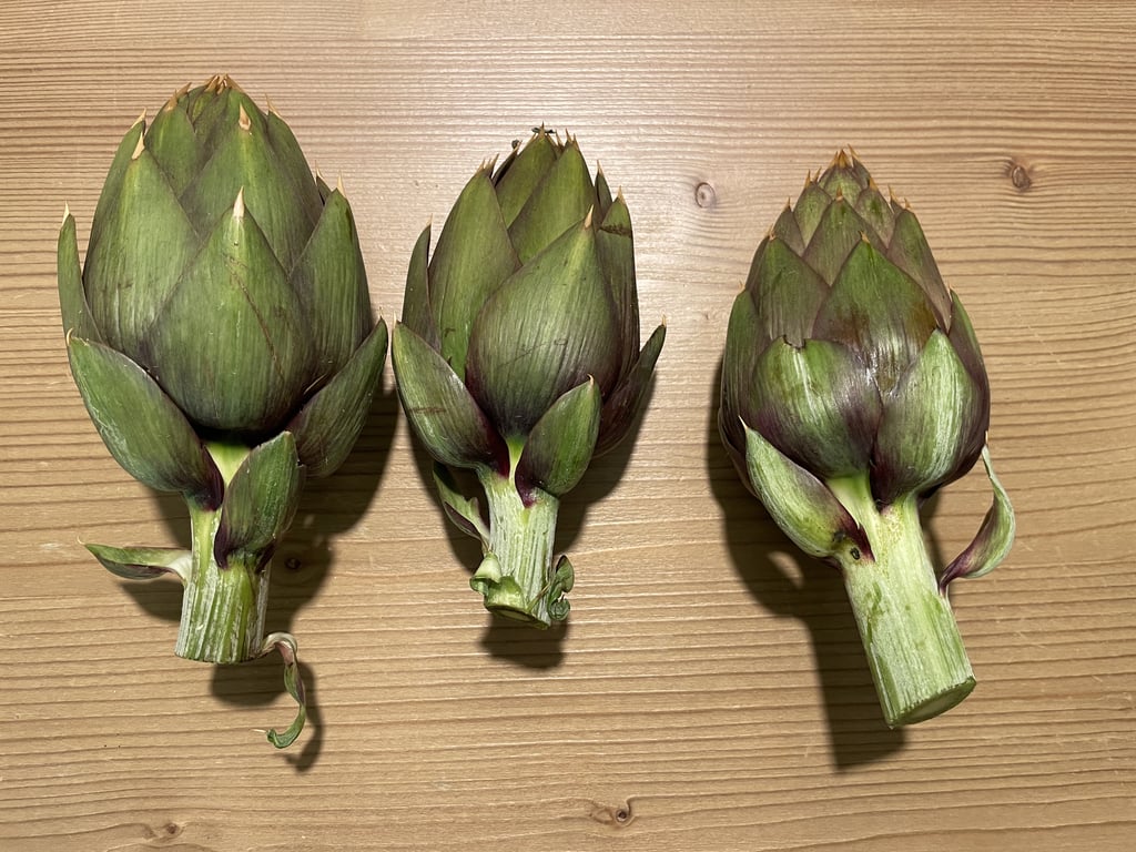 - 3 artyčoky očištěné, odložené do citronové vody (návody k očištění jsou k nalezení na YouTube, jestli máte chuť se chvíli věnovat ruční práci) / nebo můžete zasrabit a pořídit si ty naložené